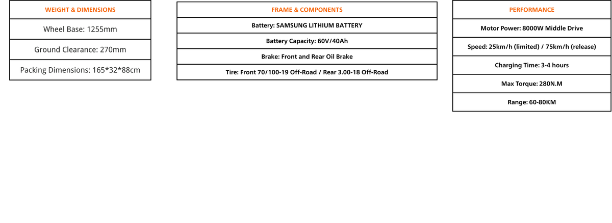 Electric dirt motorcycle: Technical Specifications