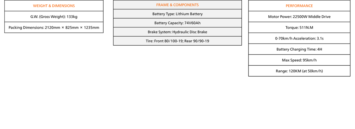 Electric dirt motorcycle: Technical Specifications